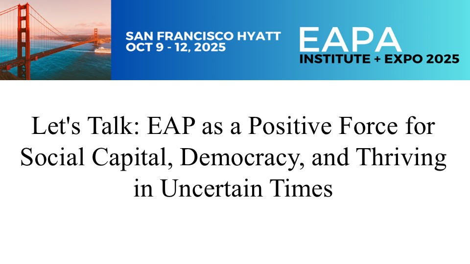 EAPA records the annual EAPA Conference breakout sessions, keynotes and EAP Talks and makes them available for purchase by viewers who can watch and earn PDCs.